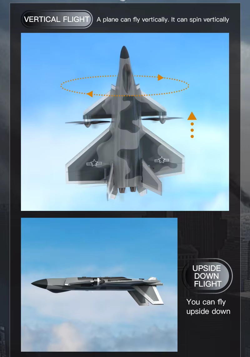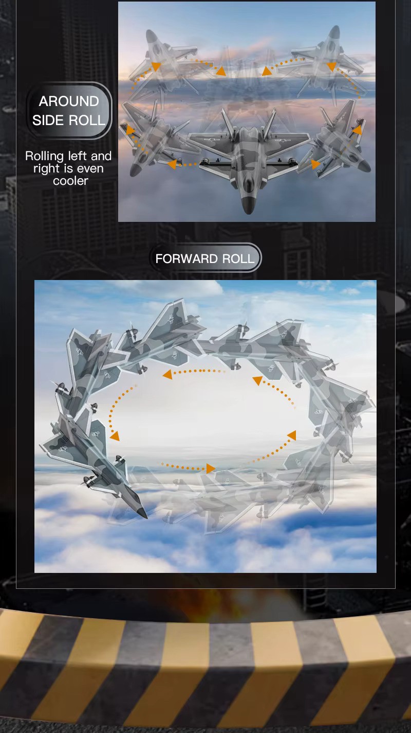✔ One-key aerobatics: rolls, flips & vertical flight