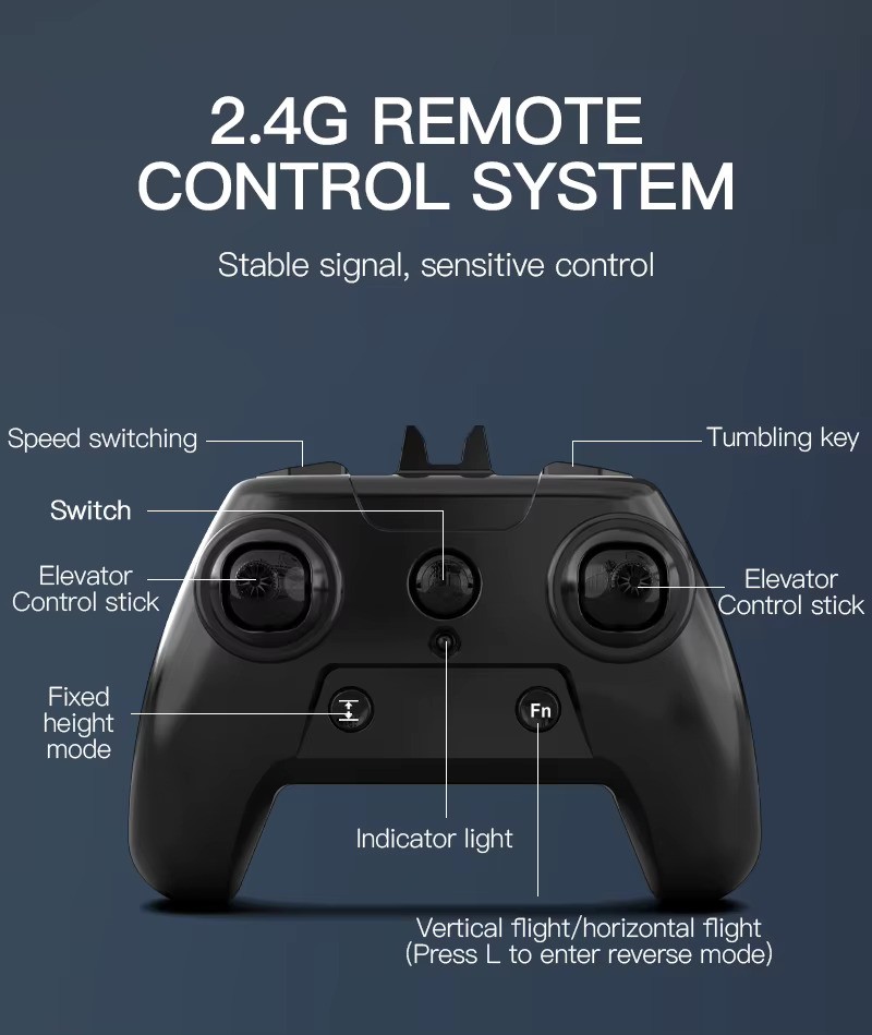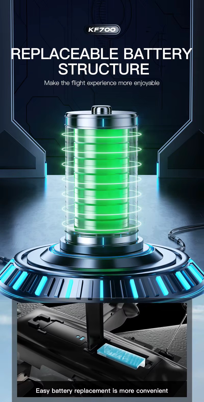 Powered by dual brushless motors and an advanced aerodynamic airfoil design, the KF700 achieves strong thrust, fast response, and stable flight even in windy outdoor conditions. The built-in gyroscope and 6-channel control system ensure precise maneuverability, making complex moves like vertical climbs, rolls, inverted flight, and tumbling actions effortless with one-key aerobatics.