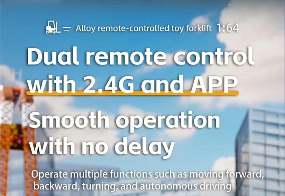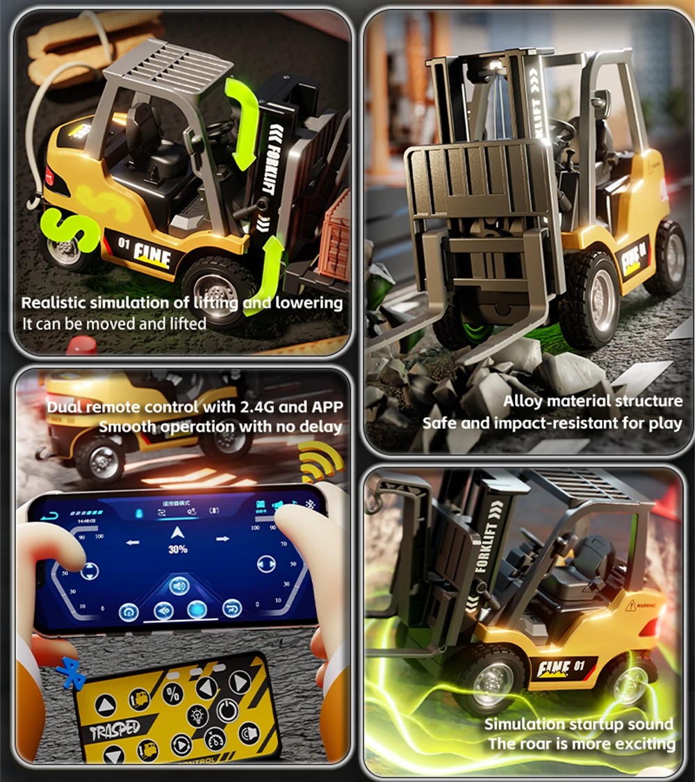 Dual Control (Remote + App) | Adjustable Speed & Lights | 7.4V Forklift Battery | 25–30 Min Runtime