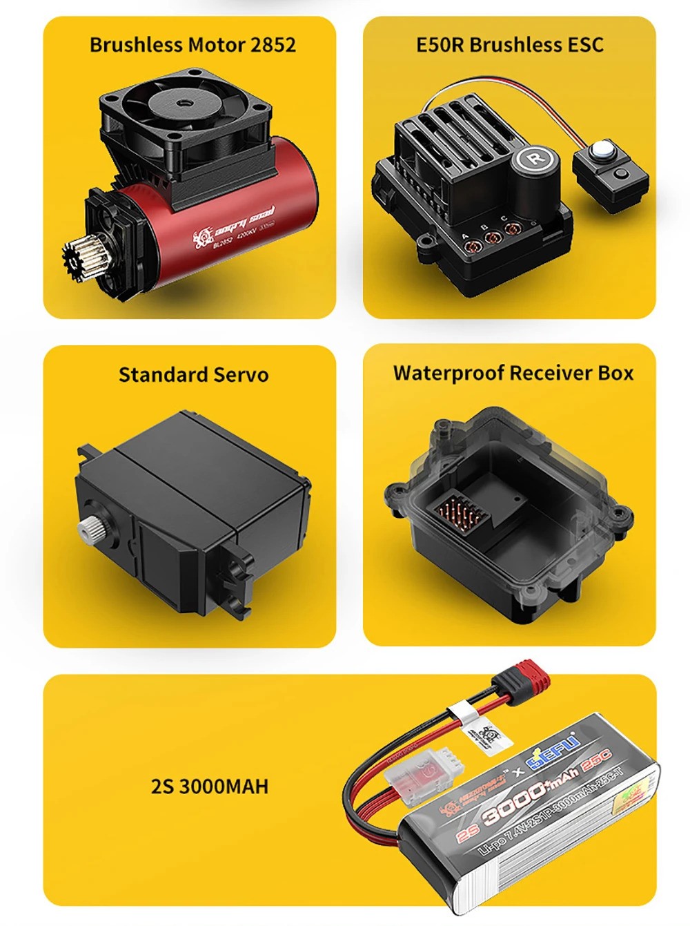 Brushless Power System: High-efficiency 2852 4200KV motor with 50A ESC for explosive acceleration and durability.