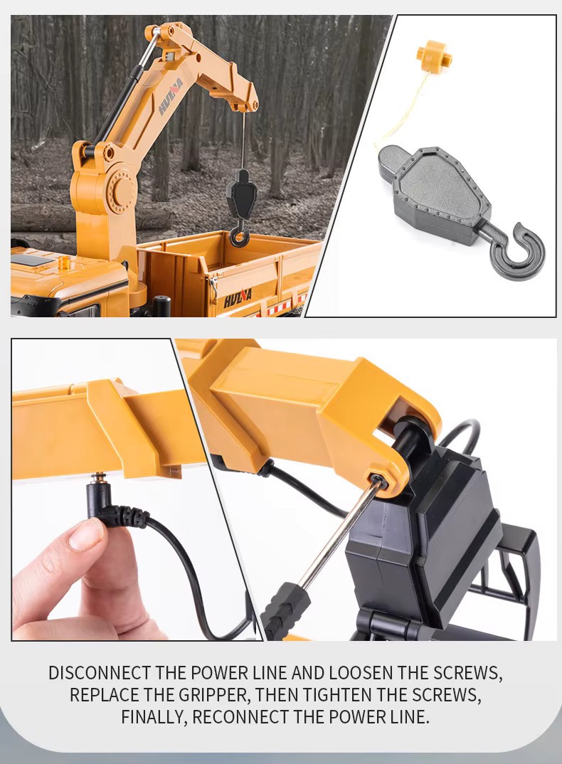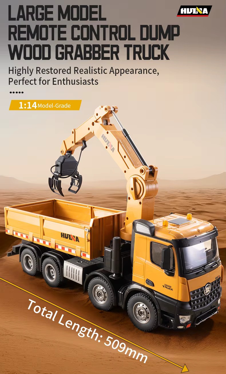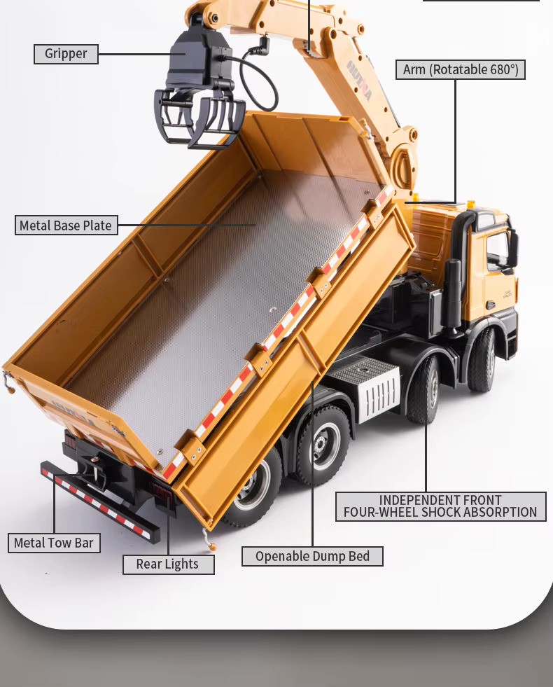 Experience realistic construction play with the 1:14 Scale 26-Channel Alloy RC Crane Truck, equipped with powerful lifting functions, 360° rotating grab arm, independent boom control, and long-lasting battery performance. Built with a combination of metal + high-strength plastic, this crane delivers real-life engineering movement ideal for kids, teens, and hobby-grade RC fans.