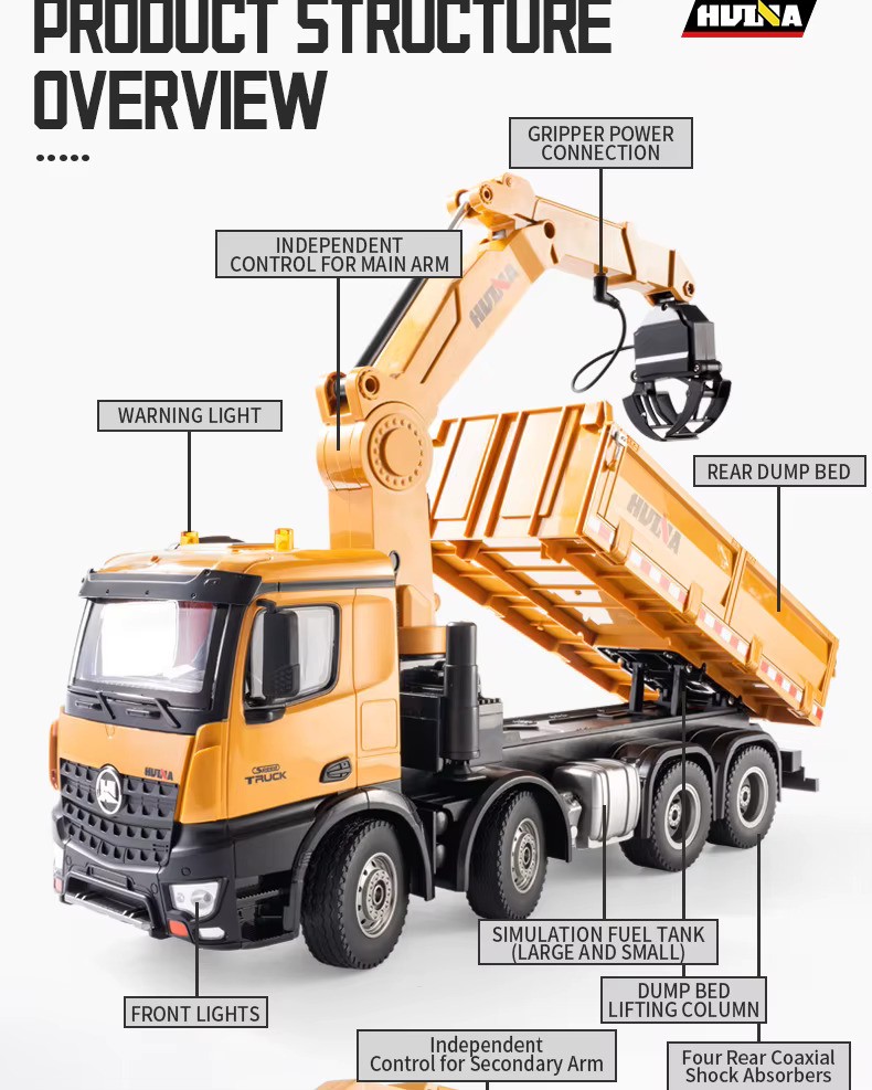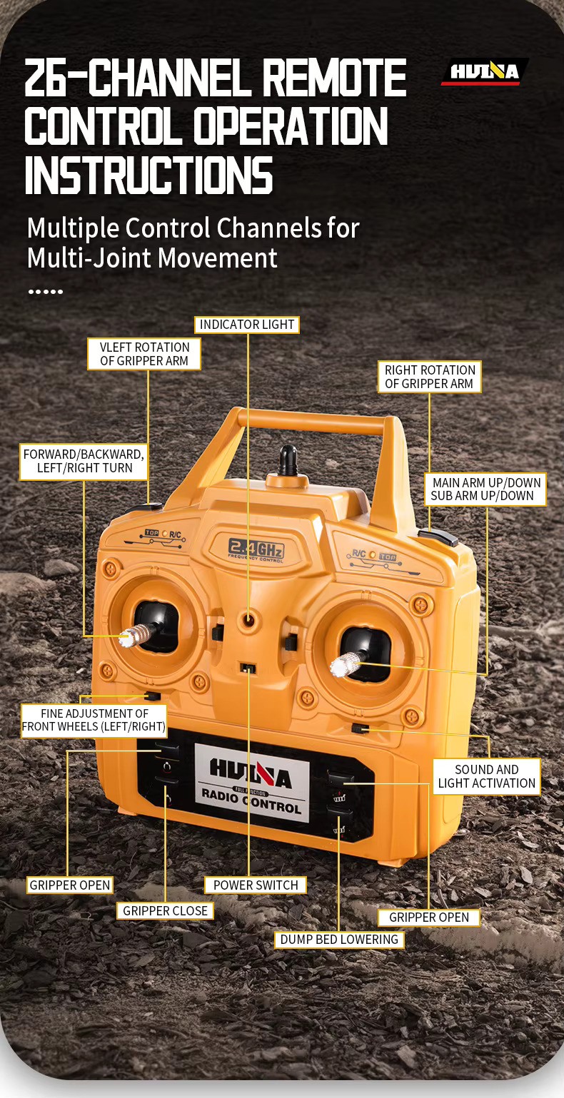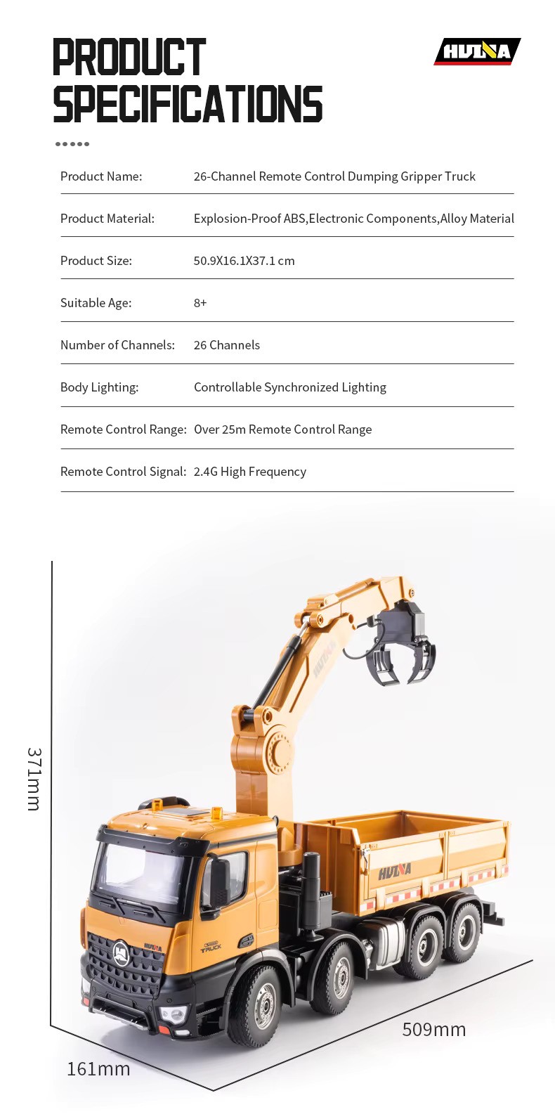 1:14 Alloy 26-Channel RC Crane Truck – 2.4G Remote Control Construction Vehicle (Huina Series)