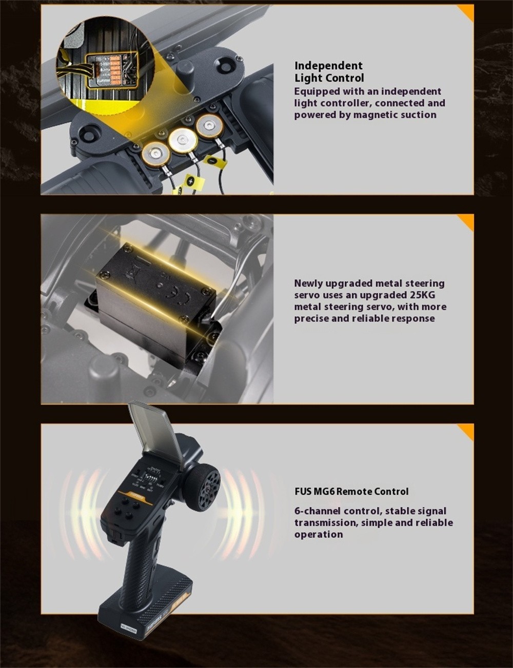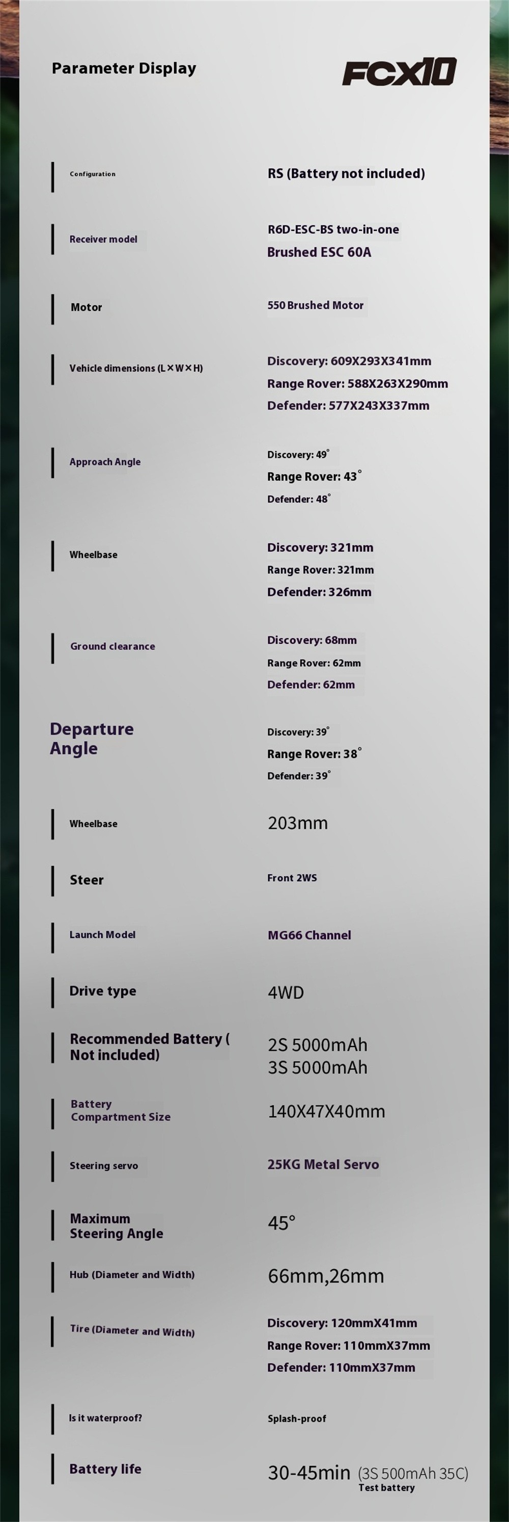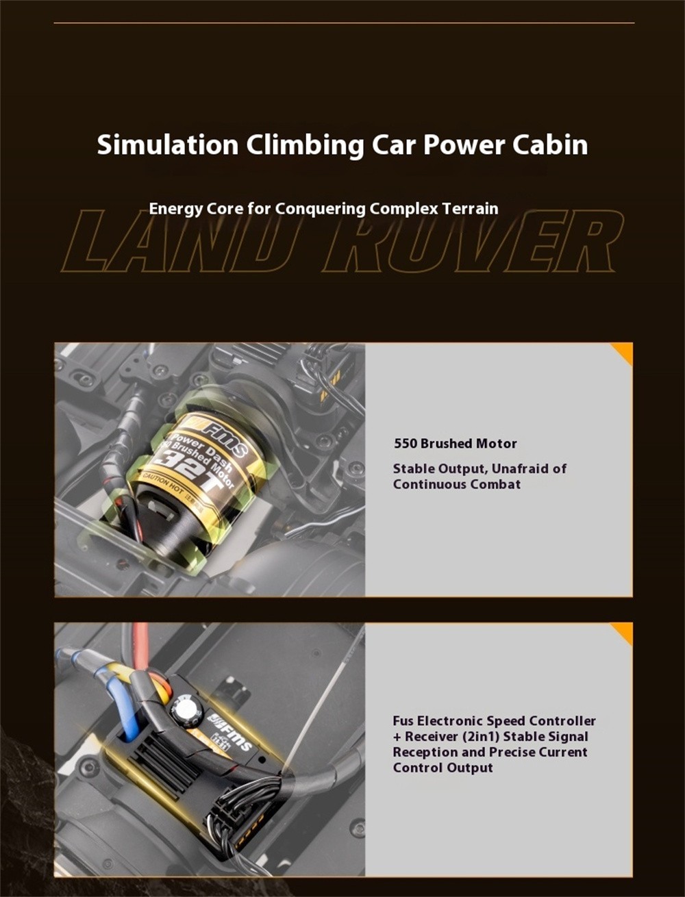 With a 550 brushed motor, 60A ESC, 25kg metal servo, full metal drivetrain, and the strong FCX10 chassis, this crawler is designed for extreme off-road performance while keeping incredible scale detail.