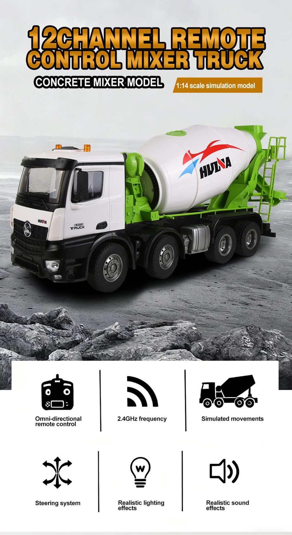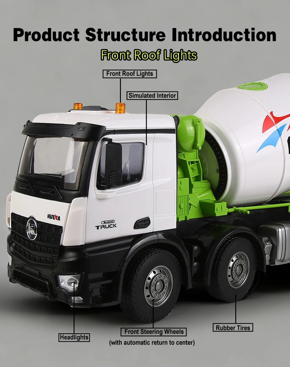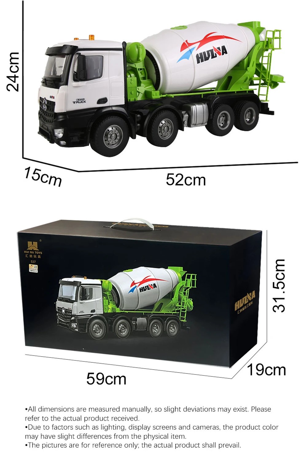 - Model: HUINA 1537 WHITE DUMP MIXER TRUCK