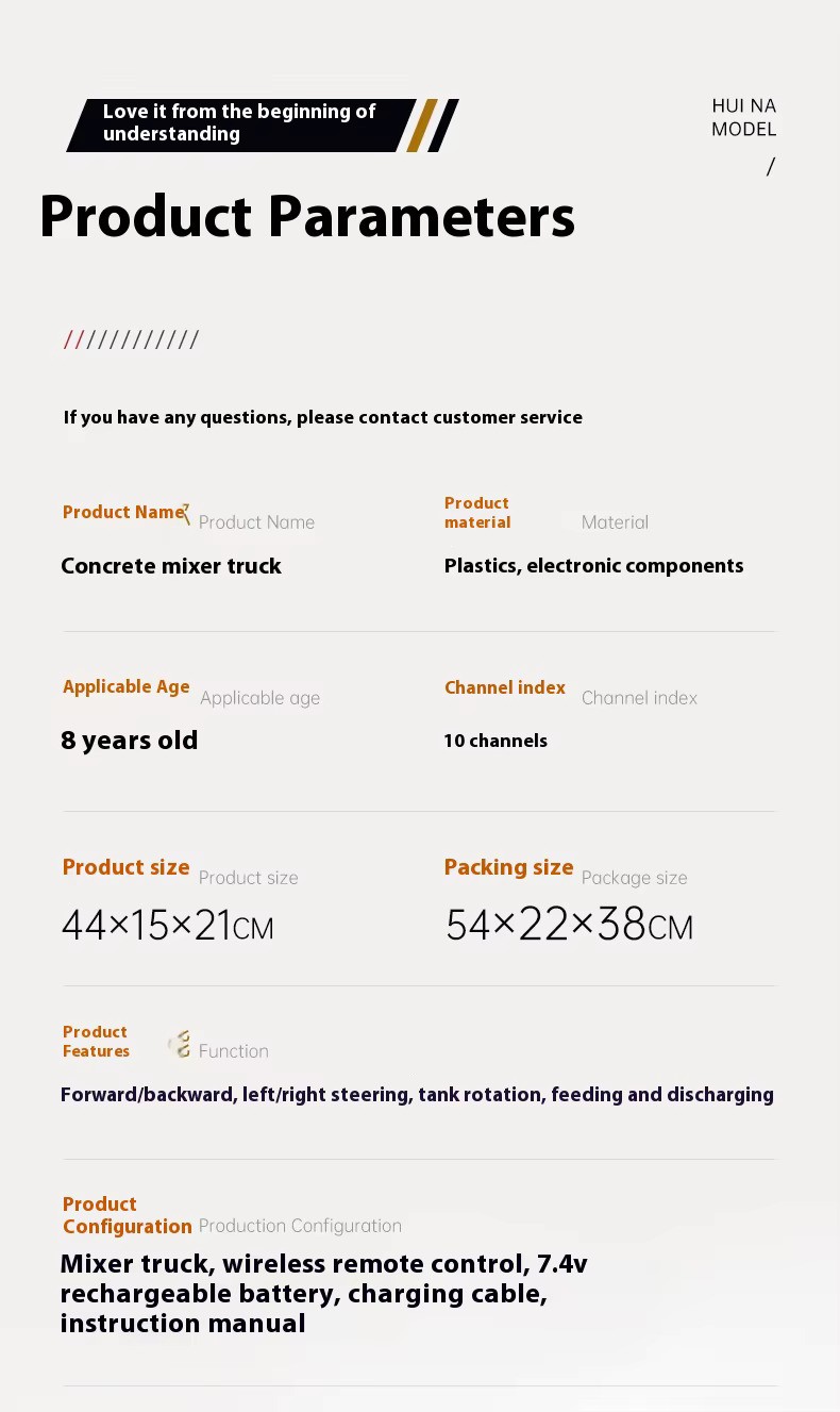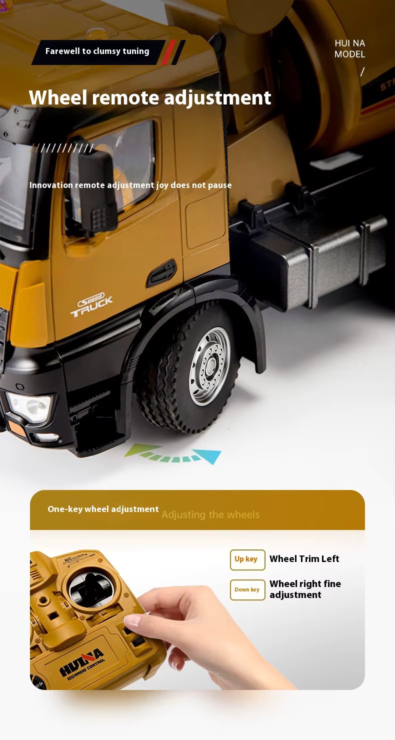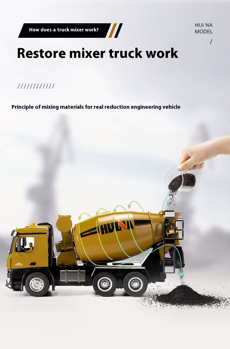 The HUINA 1574 is a realistic 1:14 scale remote-controlled concrete mixer truck designed for construction simulation enthusiasts. With 10-channel control, rotating mixer drum functionality, and durable metal-plastic construction, this engineering vehicle offers an authentic job-site experience.