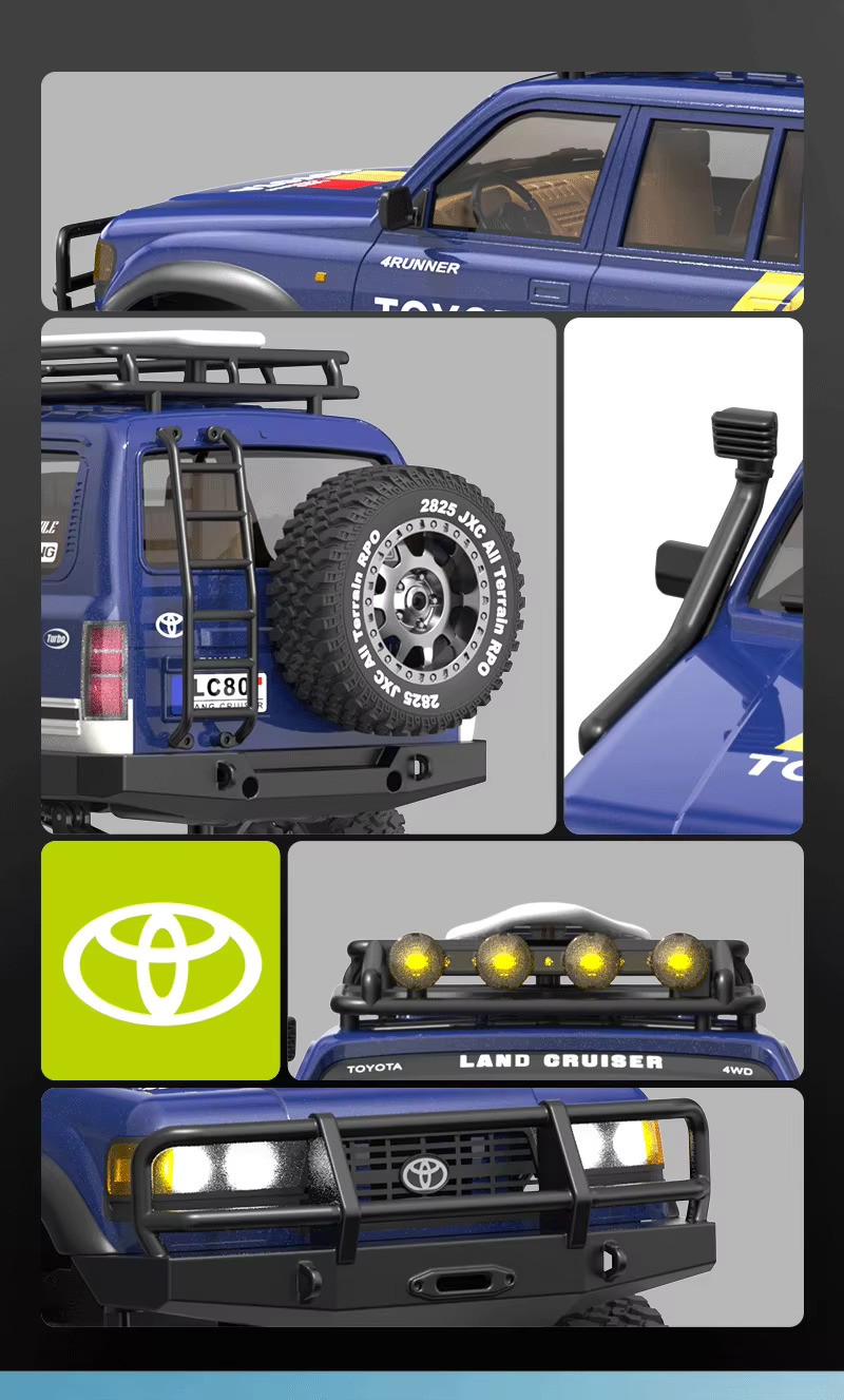 The LC80 1:12 Full Scale RC Rock Crawler is a realistic and capable four-wheel-drive off-road RC vehicle, designed for climbing, trail driving, and everyday outdoor fun. With its detailed scale body and durable construction, the LC80 delivers an authentic off-road experience suitable for both beginners and hobby enthusiasts.