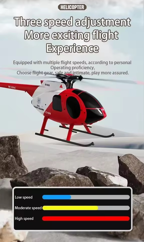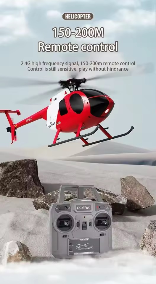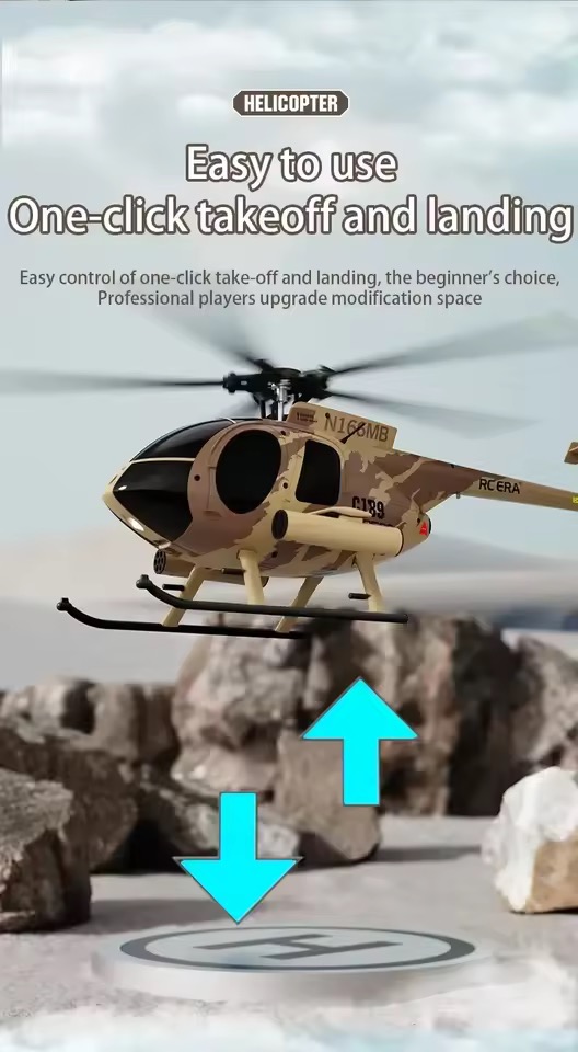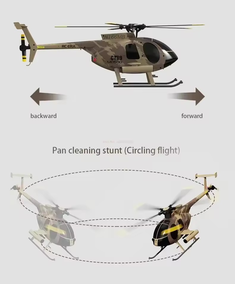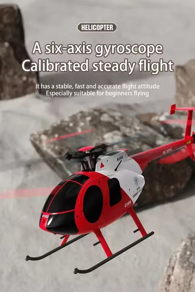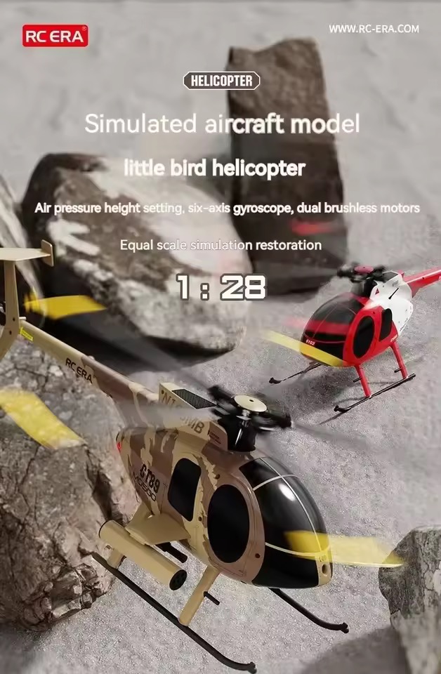 The RC ERA C189 MD500 Bird is a 1:28 scale Ready-to-Fly helicopter inspired by the legendary Hughes MD 500. Designed with a flybarless single-rotor system, dual brushless motors, and 6-axis electronic gyro stabilization, it delivers smooth, powerful, and highly stable flight performance.
