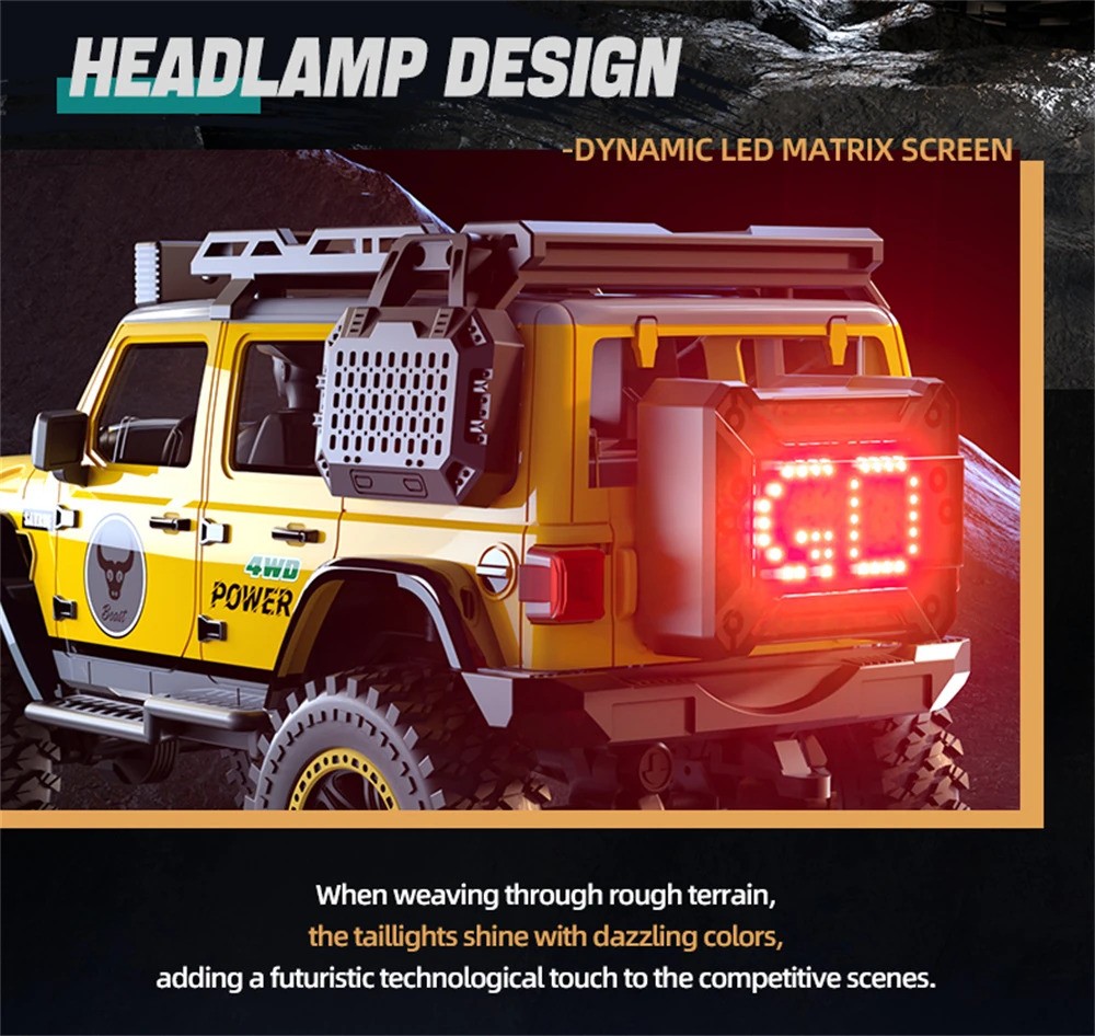 Front & rear lights, colorful LED effects, and LED screen in trunk with 3 changing patterns